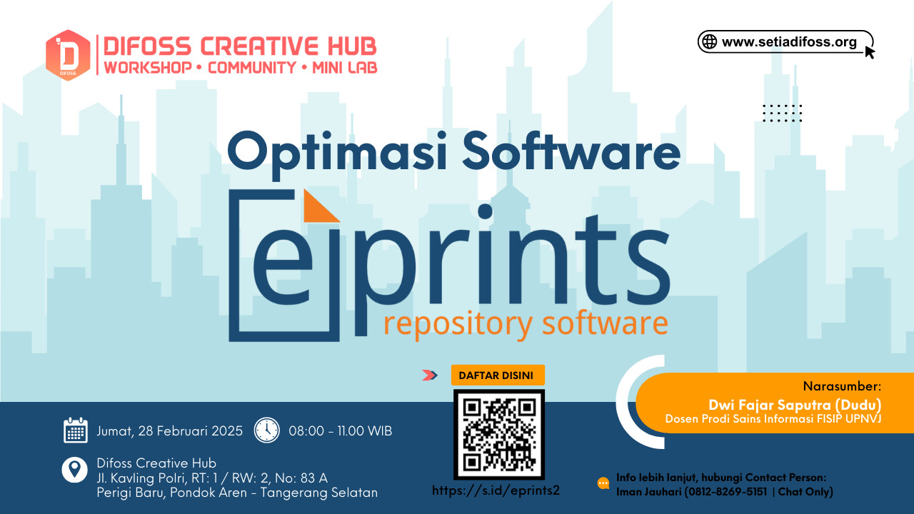 Kegiatan ini GRATIS. Dilaksanakan secara Hybrid (Luring & Daring menggunakan Gmeet) Jumat, 28 Februari 2025. Pukul 08.00 – 11.00 WIB Lokasi : Difoss Creative HubJl.…